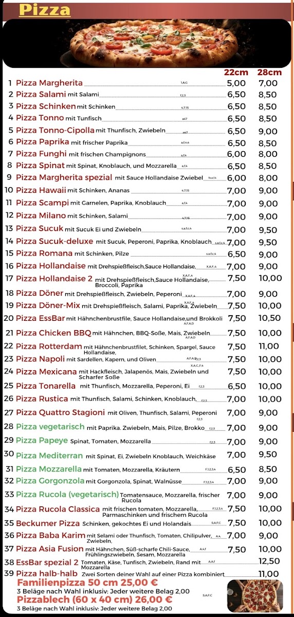 Welcome to EssBar Döner & Pizza, the culinary gem located at Weststraße 5, 59269 Beckum, Germany. Here, you’ll discover a delightful menu that marries the rich flavors of traditional döner kebabs with mouthwatering pizzas, ensuring something for every palate.